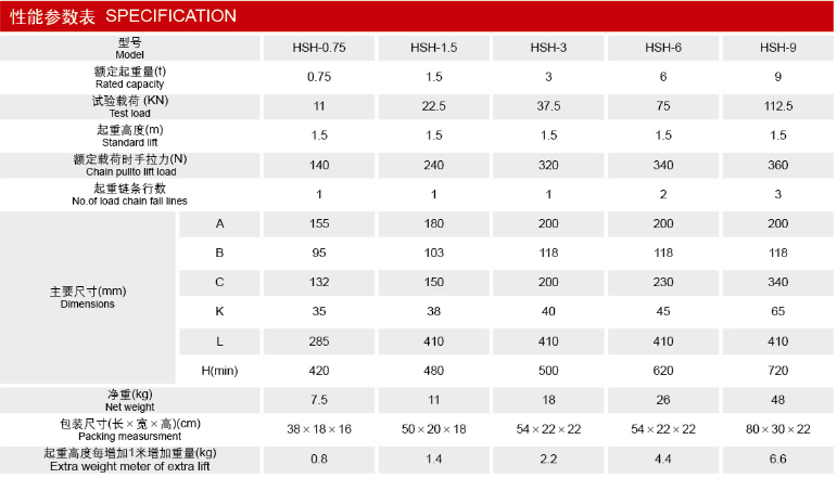 Name:1.5 tons of hand pulling hoist
